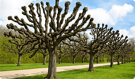 Tree pollarding removes upper branches to control size and growth.
